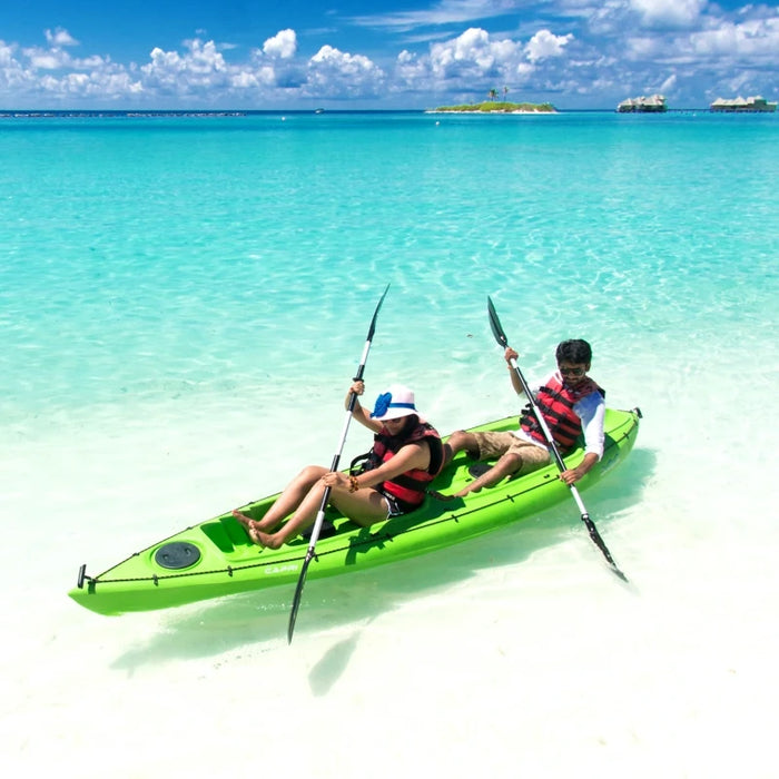 Stay safe on the water with this adult life jacket designed for kayaking, surfing, boating, and other water sports. This vest features 50N buoyancy with super soft layered PE foam in the back for comfort and support. The CE-certified, hard-wearing nylon outer shell offers durability and performance. Adjustable webbed straps with front buckle and zip closure ensure a snug, secure fit. Includes a front utility pocket and elasticated waist for added comfort. Suitable for users up to 120 kg.